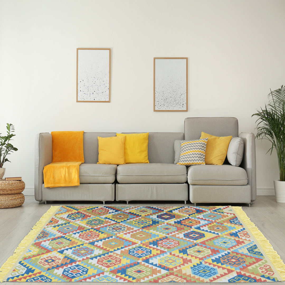 Add a splash of color to your space with our printed PET yarn rug, featuring a cotton backing and anti-slip design for extra comfort and safety. Crafted for durability and style, this rug combines modern and classic patterns to suit any décor. Perfect for living rooms, bedrooms, or hallways..