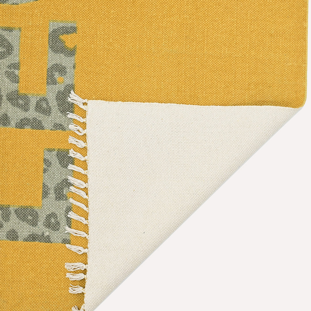 Leo Printed Cotton Dhurrie Yellow