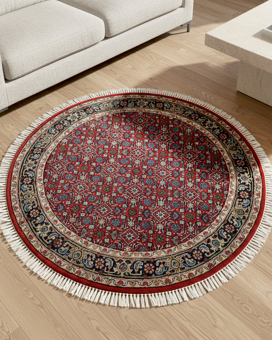 Premium Hand-Knotted Herati Round Carpet